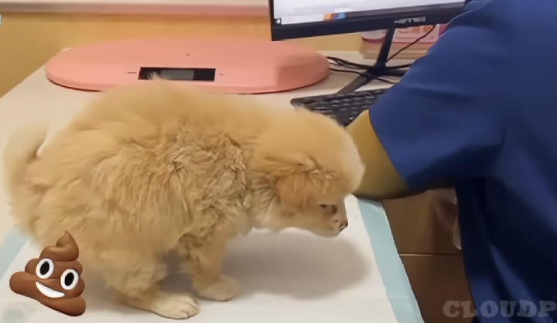 His full check-up the next day was full of surprises — Including him pooping right on the vet’s table!
