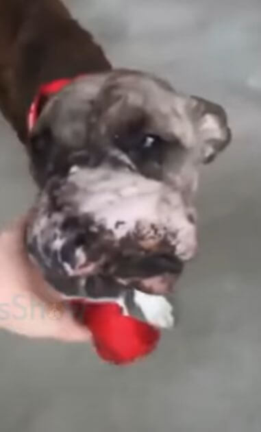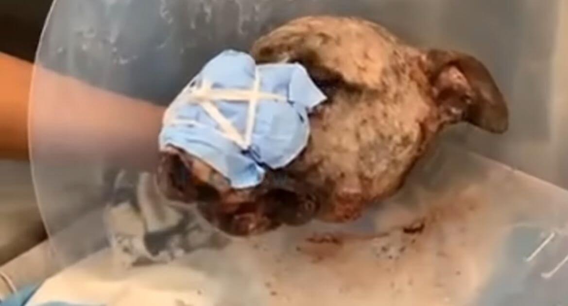 She had no nose, her jaws were broken, her teeth were scattered into a hundred pieces, and she was barely breathing.