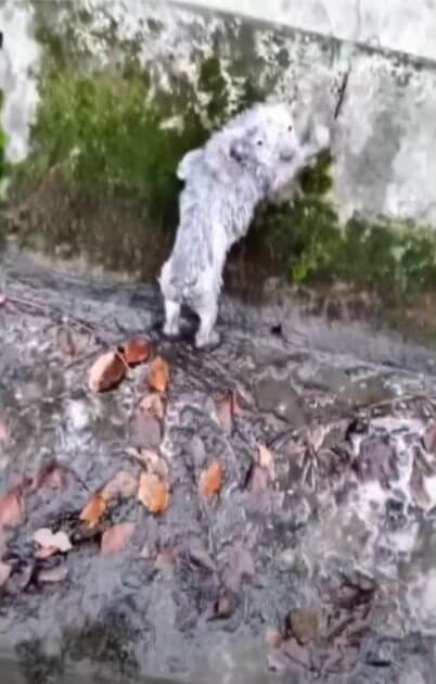 His two front legs were desperately clinging to the concrete edge, trying to climb up…