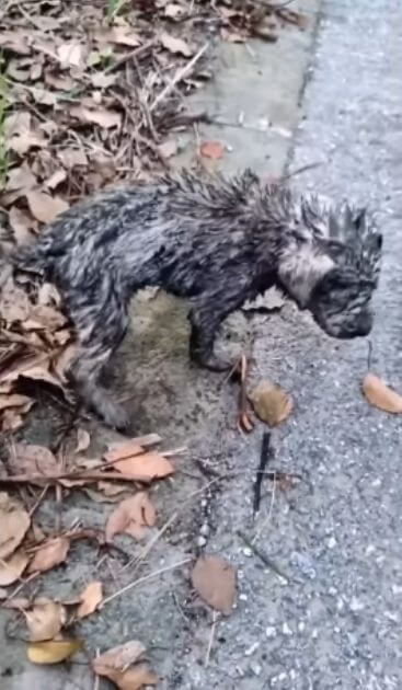 There, in a narrow canal, was a soaking wet puppy, desperately clinging to the concrete with his two front legs.
