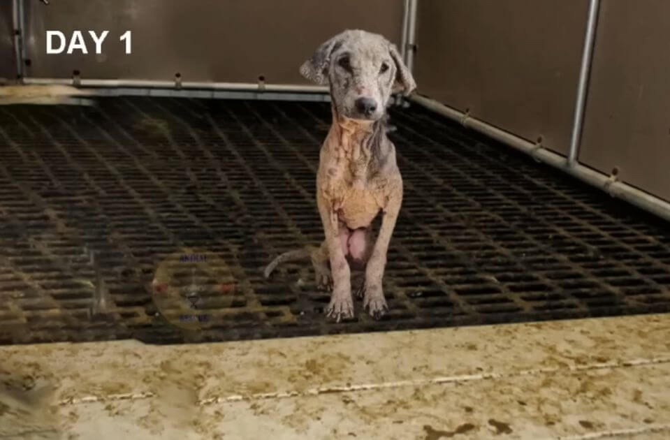 Despite weighing only 8.55 kg (nearly half of what she should), Nova wagged her tail at the sight of her caregivers.