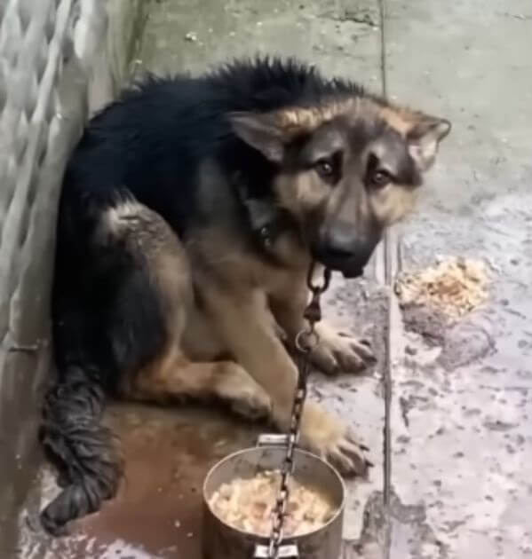 Tied up in a lonely backyard, his world was a patch of concrete soaked in cold, filth, and silence.