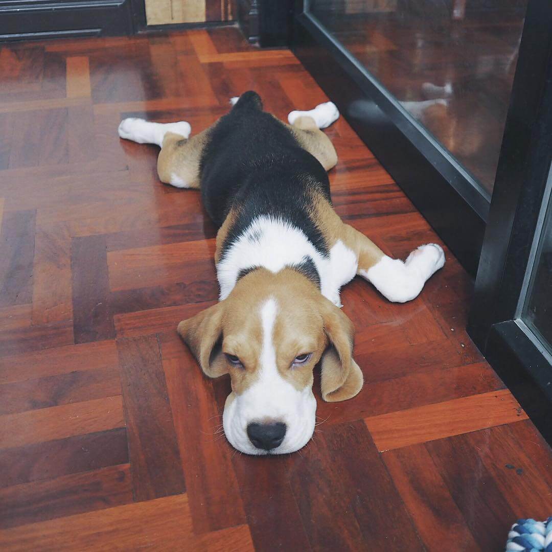 He’s lying there like the weight of the world (or maybe just his breakfast delay) broke his spirit.