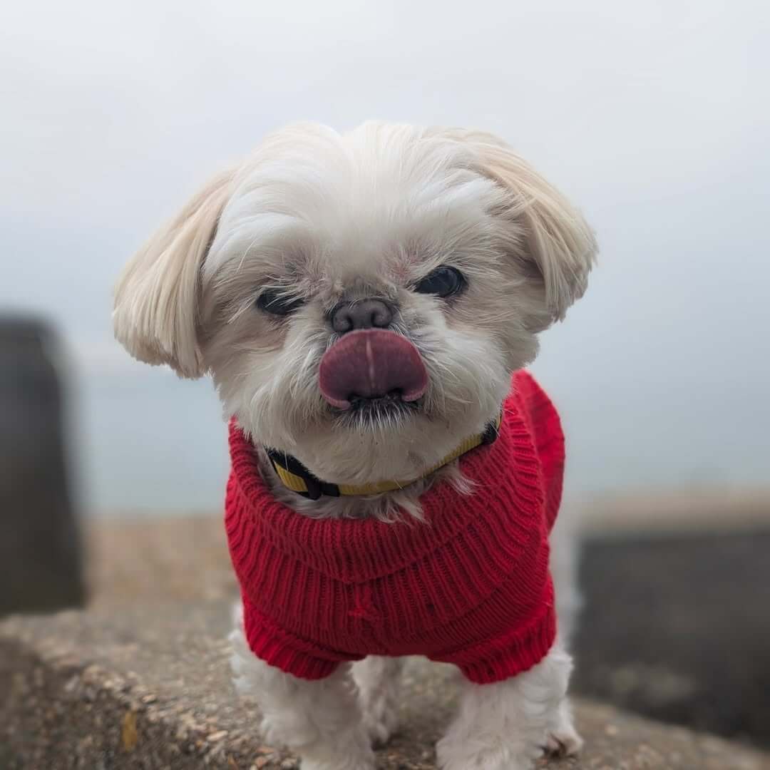 This little Shih Tzu pup figured out the ultimate defense move: poking out her tongue at any dog who dares sniff her royal peach 🍑.