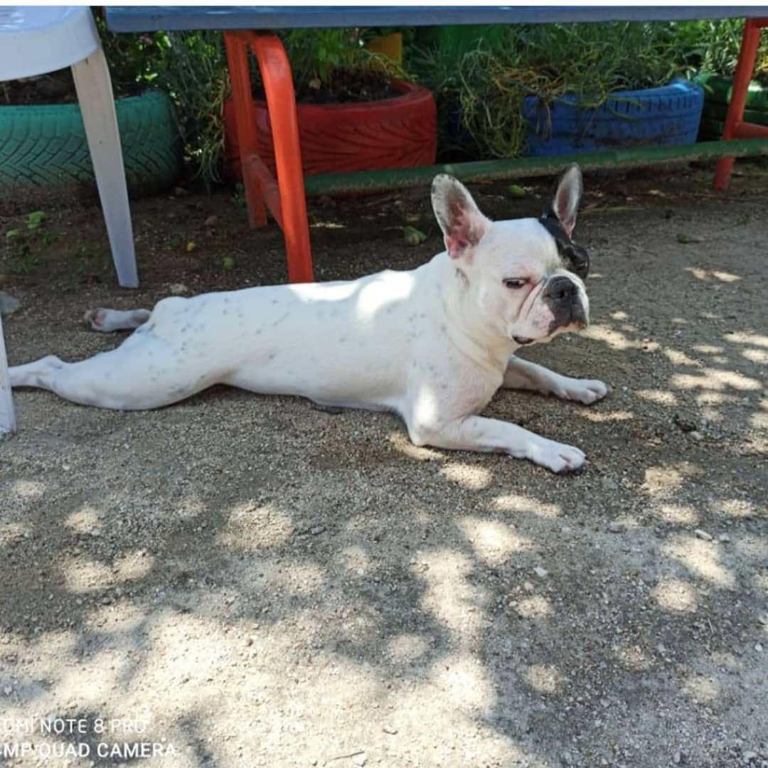 This Frenchie is posted up like a little tough guy — chest out, ears up, side-eye locked in.