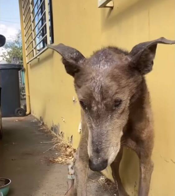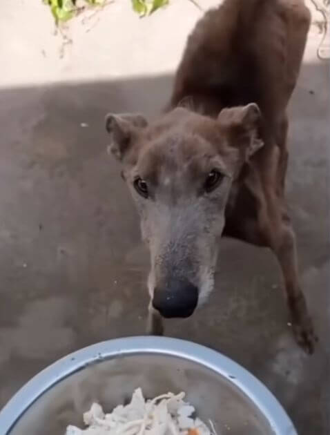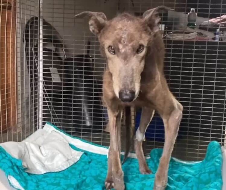 Old racing dog gets abandoned and reduced to skin and bones until one person saves him